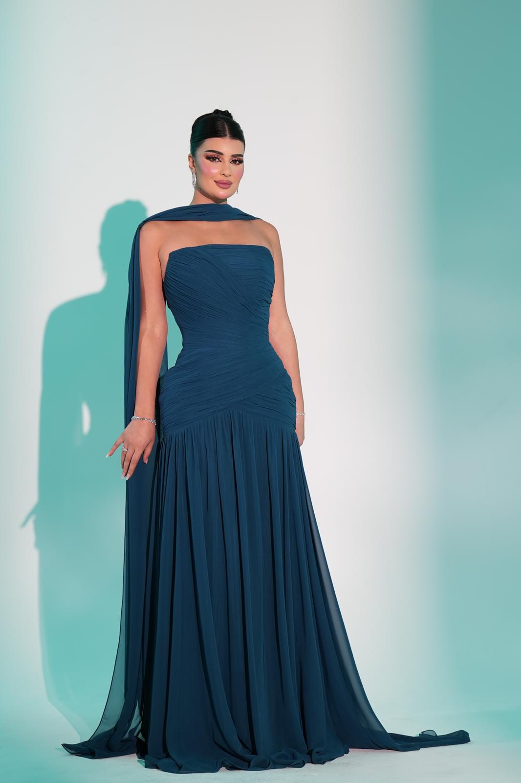 فستان من خام التفته الحرير وشيفون حرير بليسيه مع شغل يدوي من الشك الناعم