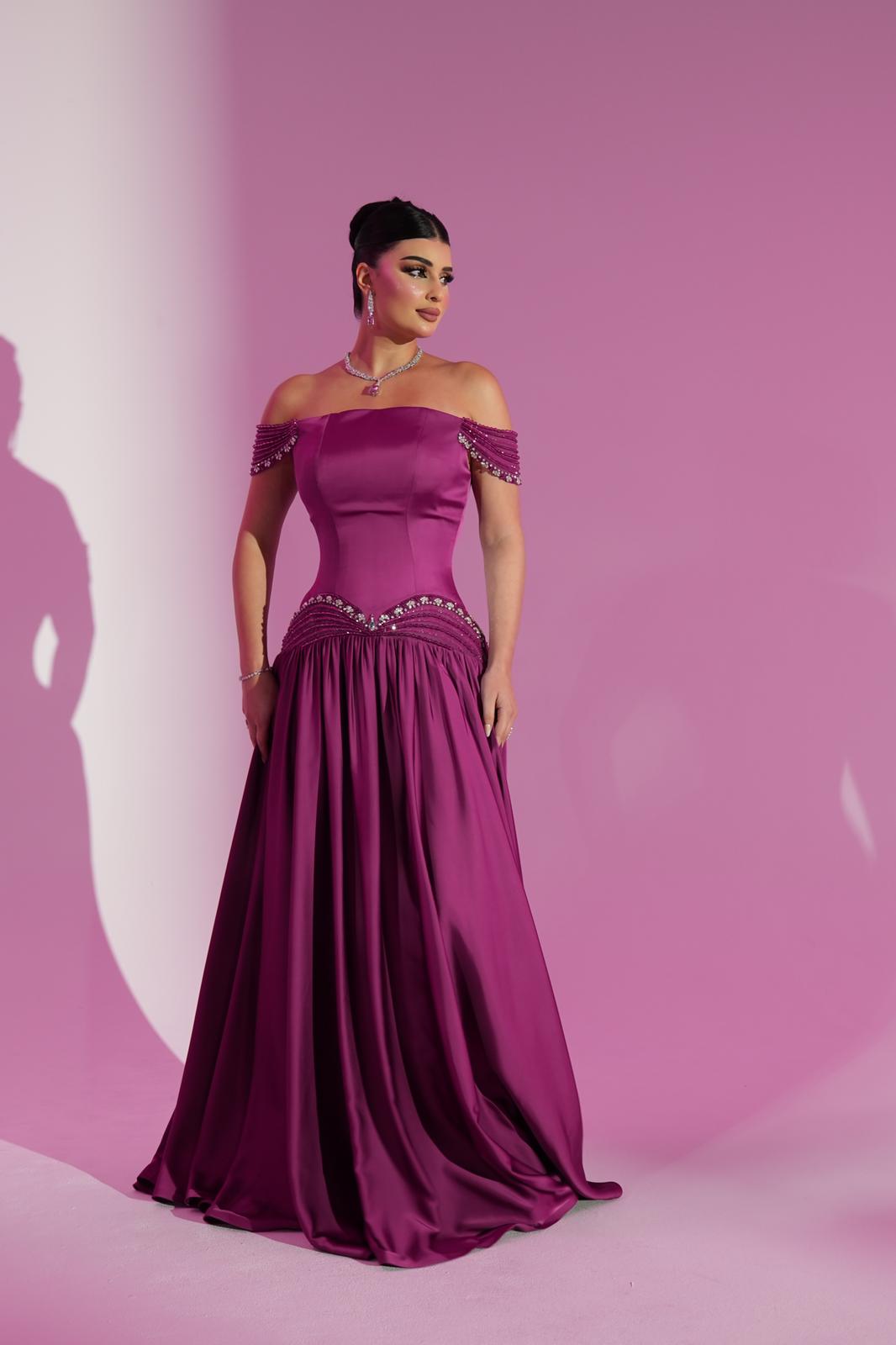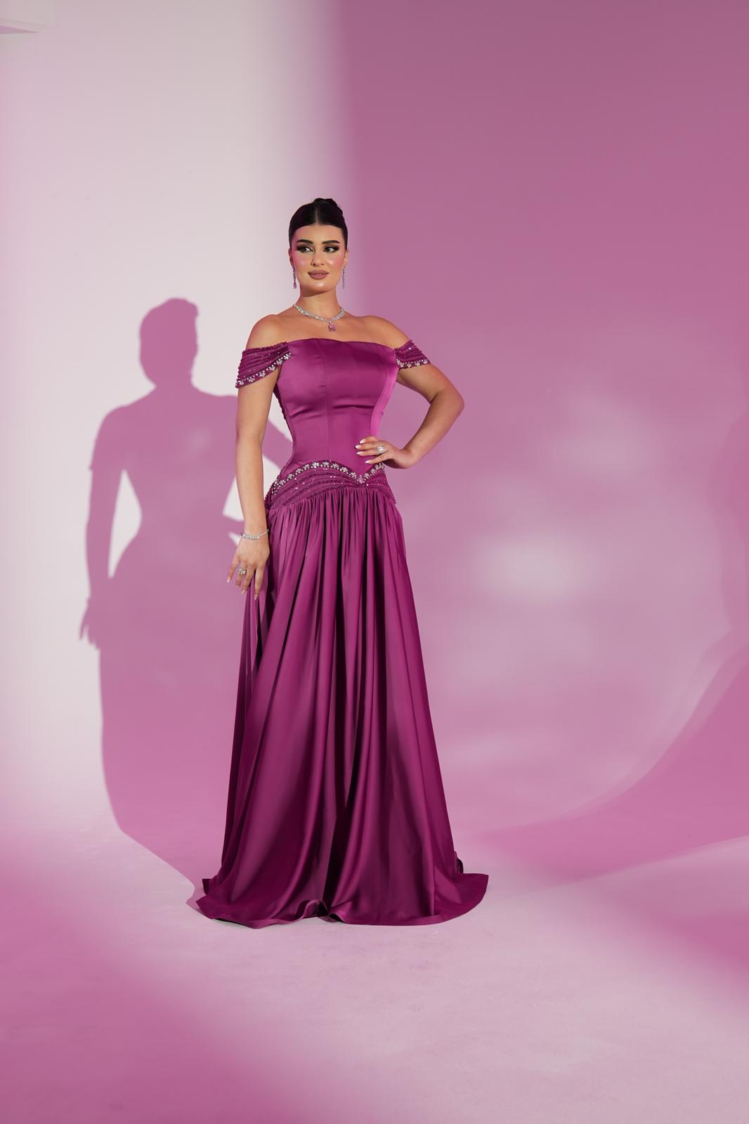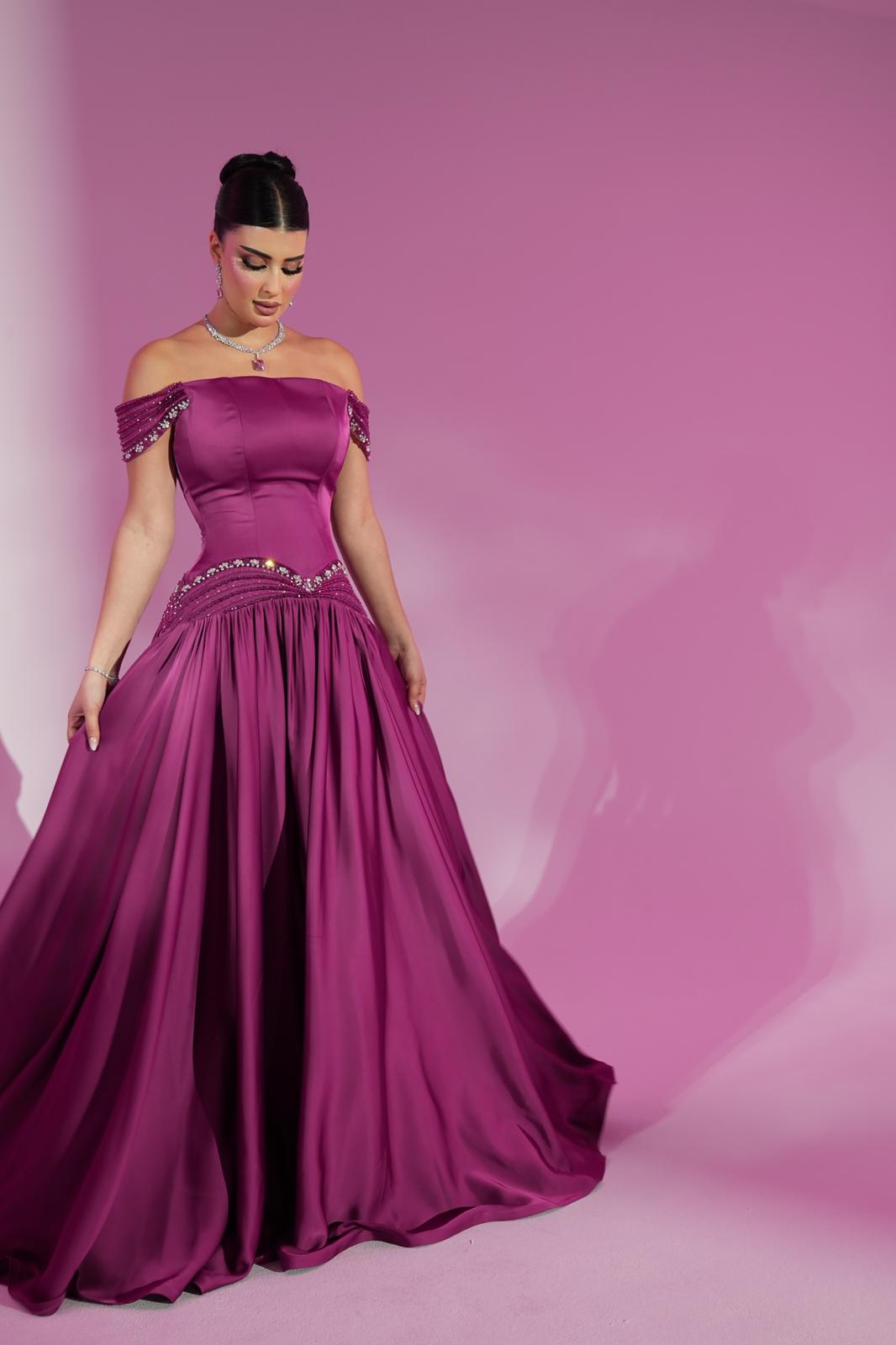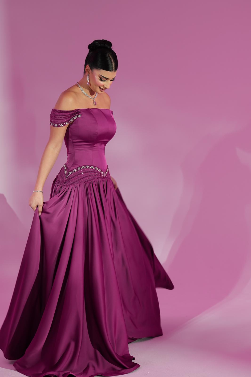 A dress made of heavy silk, exclusive to us, of the type and color…hand-embroidered