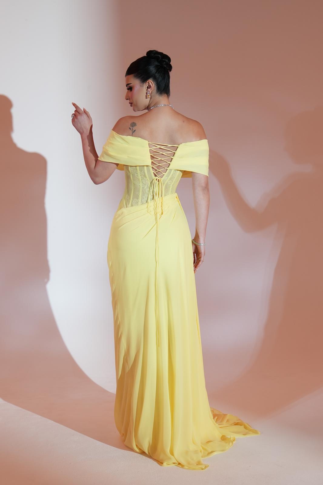 A silk chiffon dress with a French lace inner corset. Precision in detail requires precision in measurements.