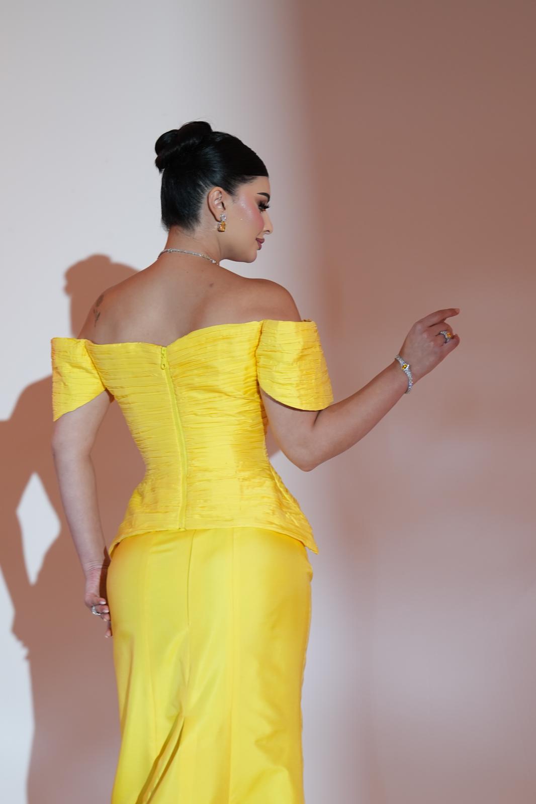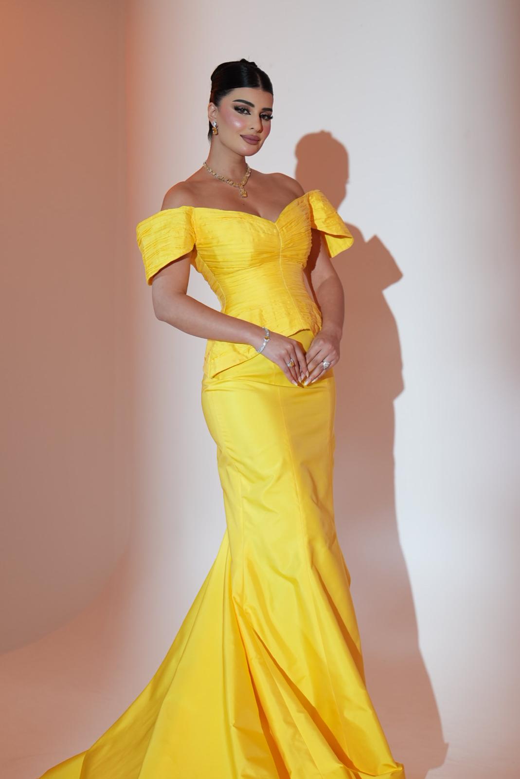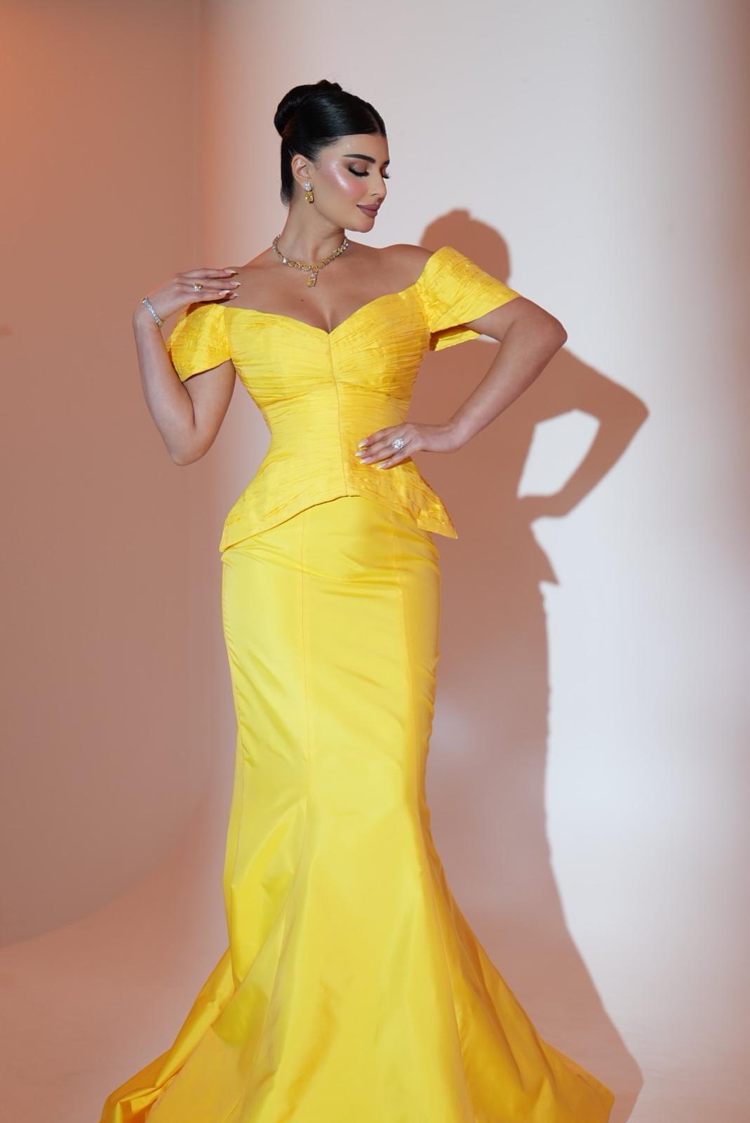 Two-piece dress, yellow, taffeta, excellent quality. Please choose the appropriate size.