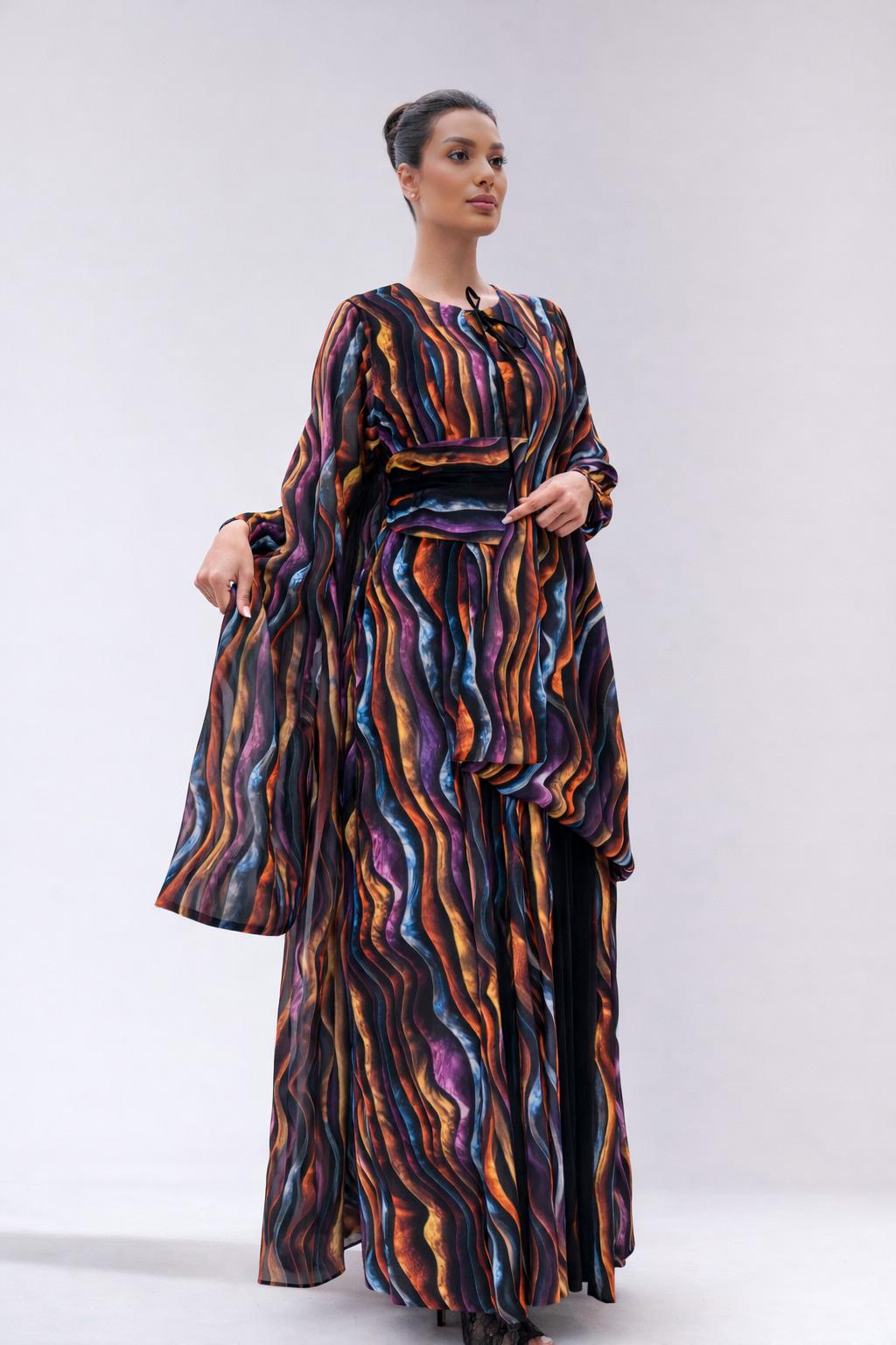 مخمل كوري حصري لدينا .. مع شال خام شيفون حرير و حزام منفصل القطعه فري سايز فقط اختاري الطول المناسب